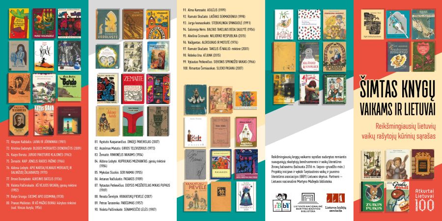 Gegužės 7-ąją Lietuvos nacionalinėje Martyno Mažvydo bibliotekoje buvo paskelbtas reikšmingiausių lietuviškų vaikų knygų sąrašas „Šimtas knygų vaikams ir Lietuvai“.