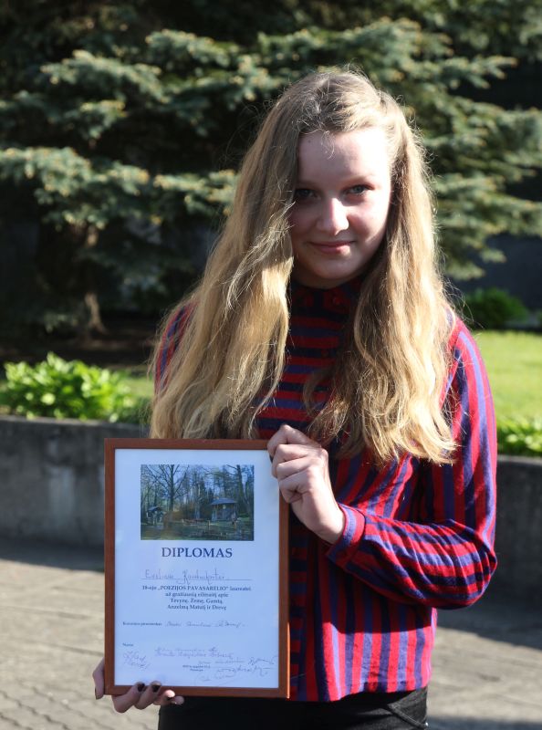 Evelina prisistato: „Po pamokų beveik kasdien skubu į dailės mokyklą – be galo mėgstu piešti, ypač gamtos vaizdus. Laisvalaikiu skaitau knygas, sportuoju, mėgstu būti gryname ore (man tai nesudėtinga – gyvenu kaime). Šeima – viena didžiausių vertybių, tad ypač branginu laiką, praleistą su vyresniuoju broliu, mama, tėčiu. Man patinka rašyti, kurti esė. Neseniai pradėjau rašyti ir eilėraščius“.