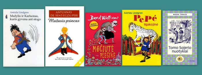 Vaikų knygų penketukas: 1. Astrid Lindgren „Mažylis ir Karlsonas, kuris gyvena ant stogo“. 2. Antoine de Saint-Exupéry „Mažasis princas“. 3. David Walliams „Močiutė plėšikė“. 4. Astrid Lindgren „Pepė Ilgakojinė“. 5. Mark Twain „Tomo Sojerio nuotykiai“.