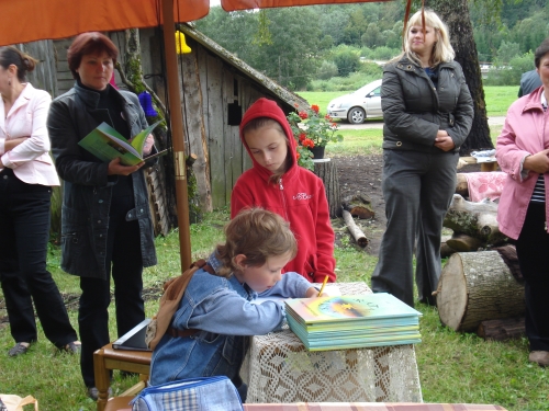 Jaunieji kūrėjai Džiugas ir Eglė sulaukė daug gėlių, dovanų, sveikinimų. Juk taip puiku nors trumpam pasijusti žvaigžde, pabūti dėmesio centre. Visi norintieji galėjo įsigyti knygutę su Džiugo autografu. Knygos leidybą parėmė keramikai Kristina ir Jaunius Ranoniai bei jų dukra Saulė. Šie menininkai iš molio nulipdė kiekvienam artistui po pakabuką, kurio viduryje buvo pavaizduotas Sėkmės ratas. Mama išdavė paslaptį, kad Džiugas jau galvoja ir apie savo antrąją knygą ir nuoširdžiai padėkojo sodybos šeimininkams R. ir F. Maršalkoms, spektaklio režisieriui V. Maršalkai, keramikams K. ir J. Ranoniams bei jų dukrelei Saulei, gydytojai Jadvygai Raudeliūnienei.